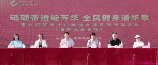球盟会(中国)集团销售公司副总监 惠鹏,太原区域经理 肖峰,晋中地区、太原地区总经理 赵淑敏,晋中太谷地区总经理 王海丽,晋中太谷地区健身操爱好者代表 杨惠荣,太谷地区消费者代表 王富平共同出席了本次活动。